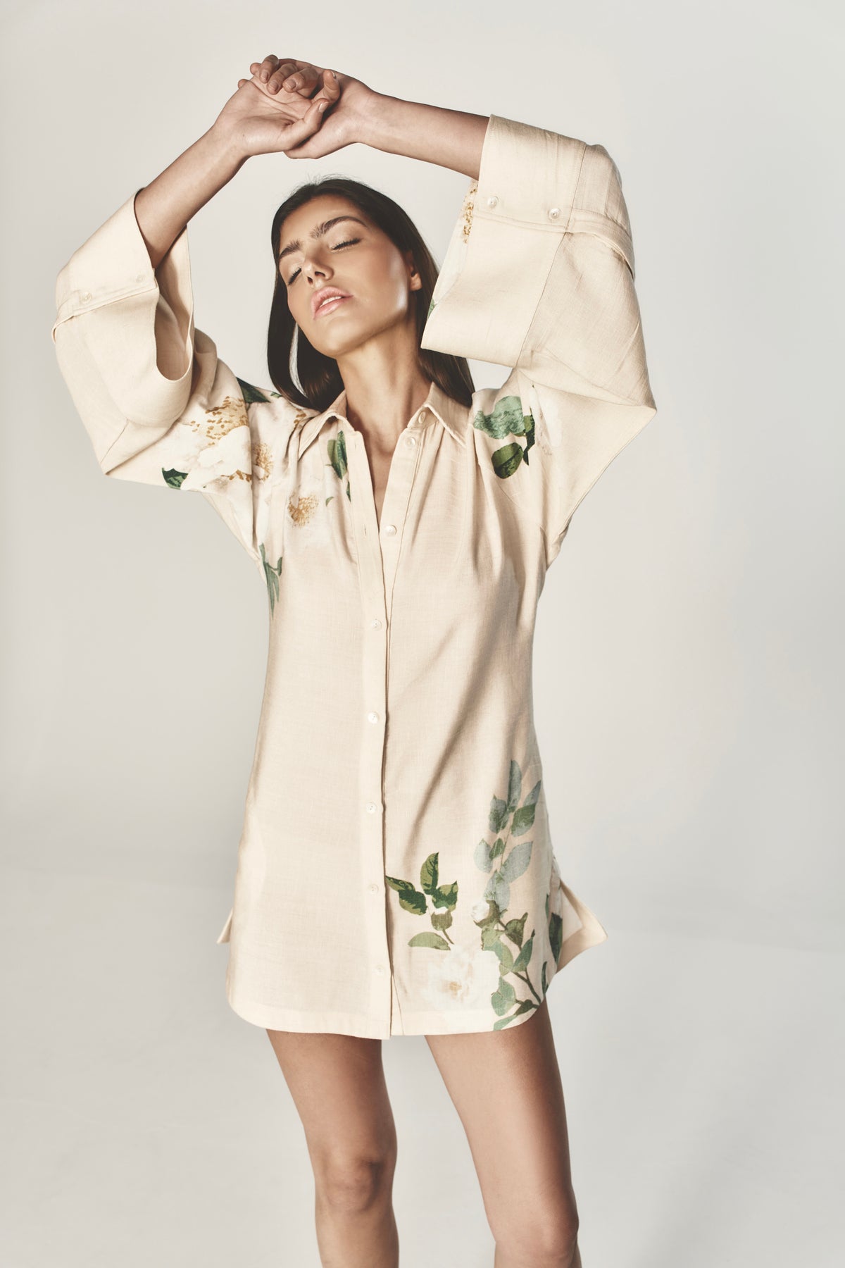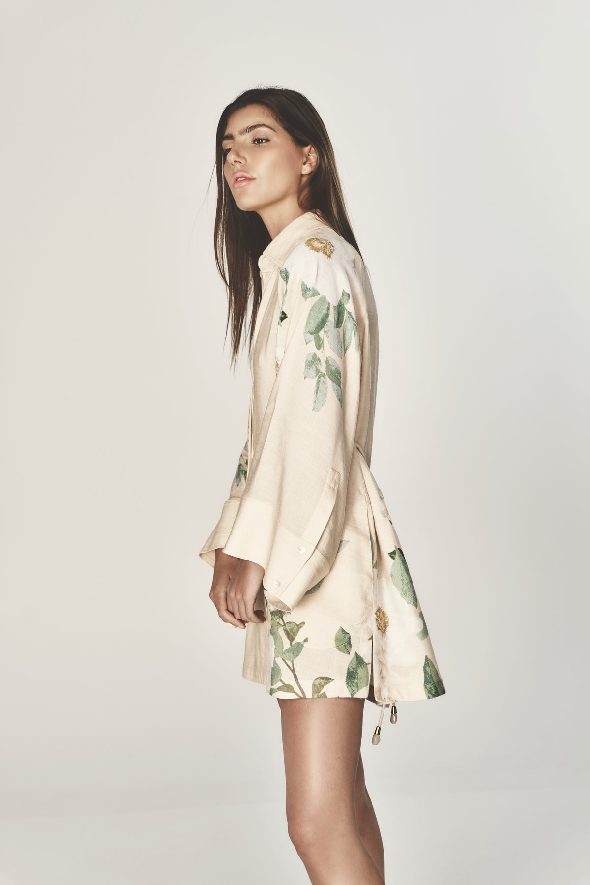 The She is Tenacious bell sleeve tunic is the summer staple that can take you from day to night, featuring button through fastening with bell sleeves and a deep cuff. This tunic length shirt can be worn back with pants or on it's own as a fun and flirty mini. Featuring side pockets and waist ties that can bow for a fitted look, with gem stone tie ends for extra weight.